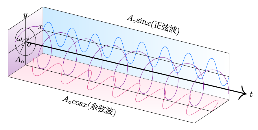 \draw(4,-4.5)node{\rotatebox{-16}{$A_\circ$cos$x$(余弦波)}};